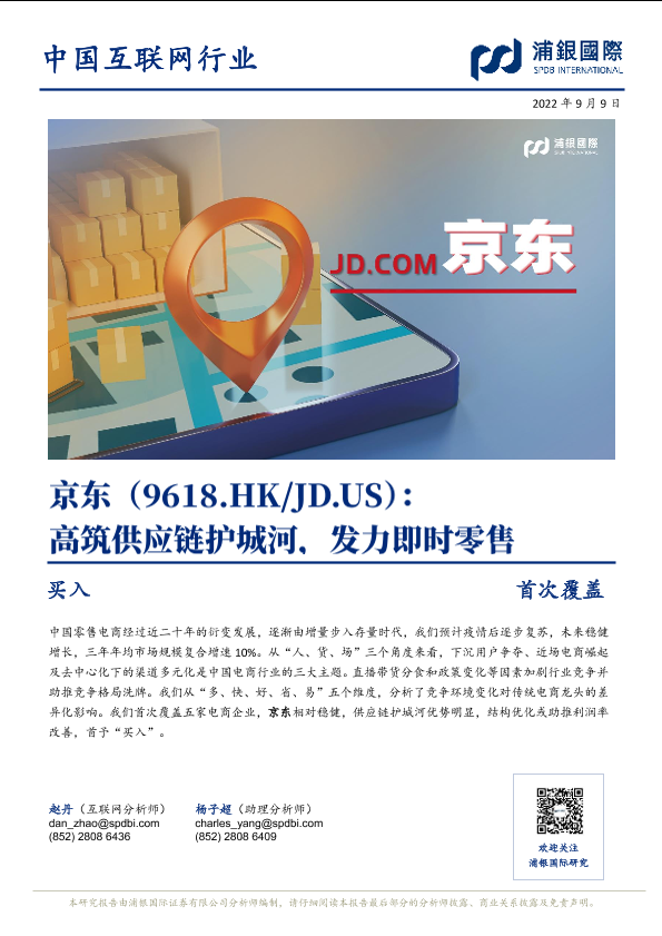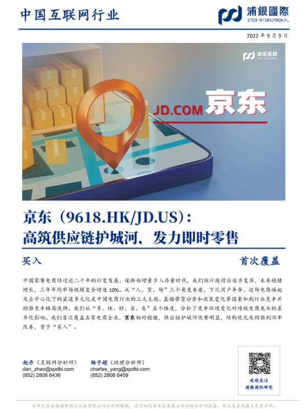 【浦银国际】【20220909】浦银国际-京东:高筑供应链护城河,发力即时零售-24页