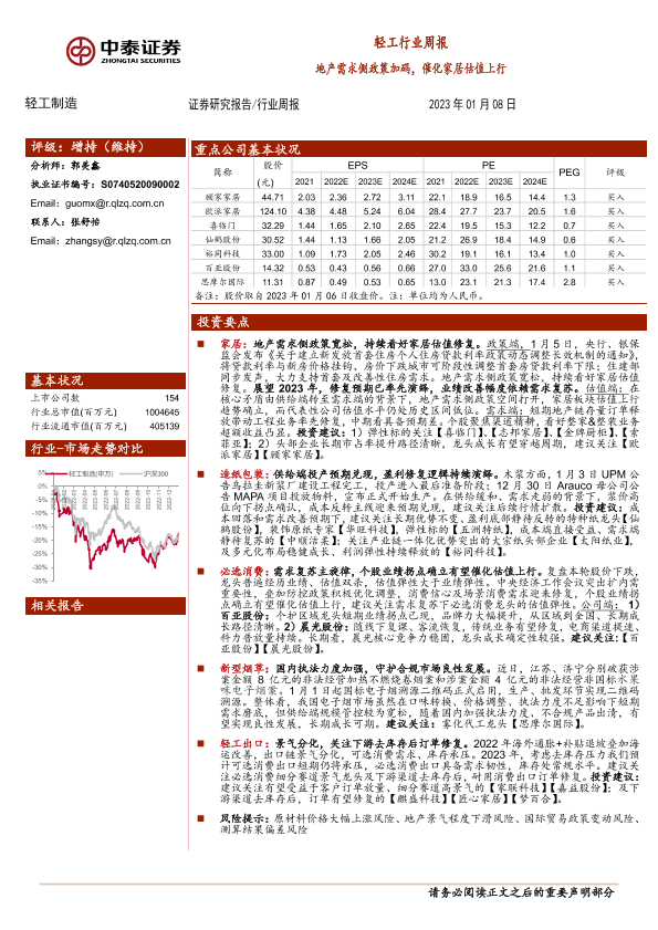 【中泰证券】【20230108】轻工行业周报:地产需求侧政策加码,催化家居估值上行-15页