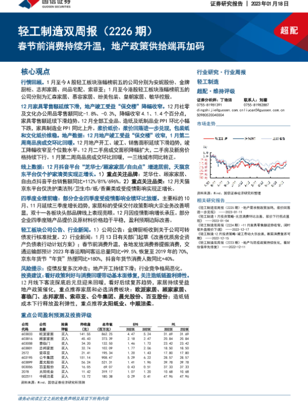 【国信证券】【20230118】20230118-国信证券-轻工制造双周报(2226期):春节前消费持续升温,地产政策供给端再加码-22页