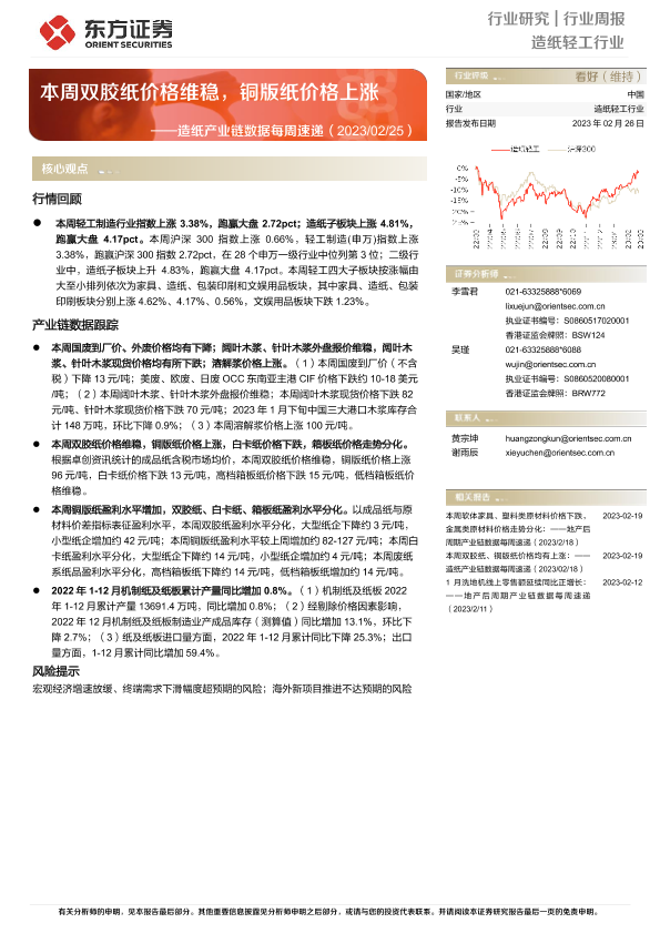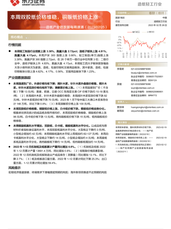 【东方证券】【20230226】20230226-东方证券-造纸产业链数据每周速递:本周双胶纸价格维稳,铜版纸价格上涨-13页