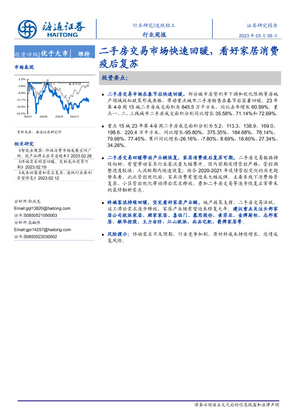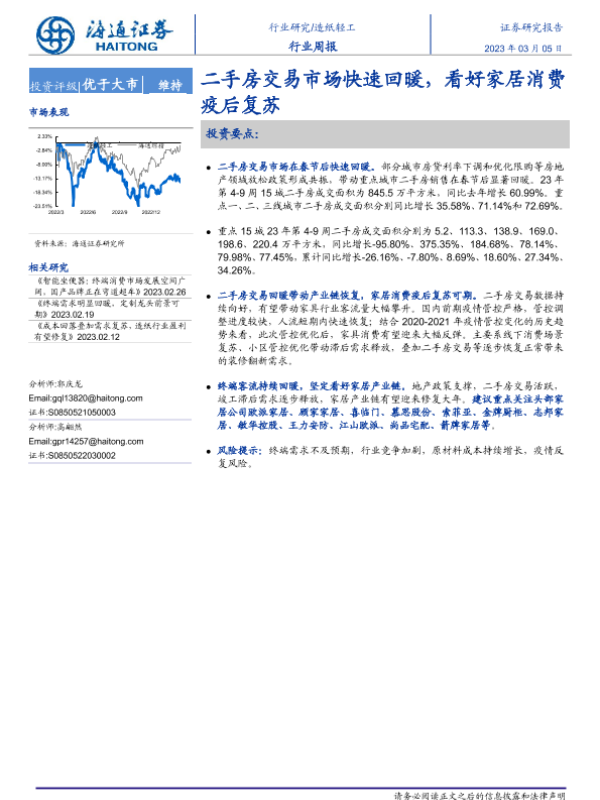 【海通证券】【20230305】20230305-海通证券-造纸轻工行业周报:二手房交易市场快速回暖,看好家居消费疫后复苏-11页
