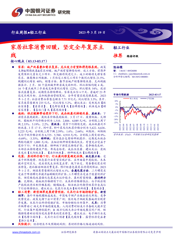 【银河证券】【20230319】20230319-中国银河-轻工行业周报:家居社零消费回暖,坚定全年复苏主线-21页