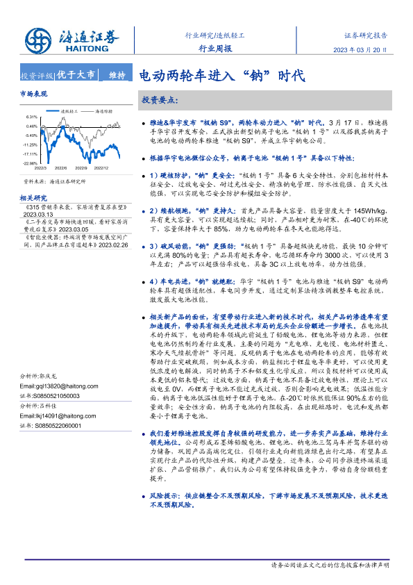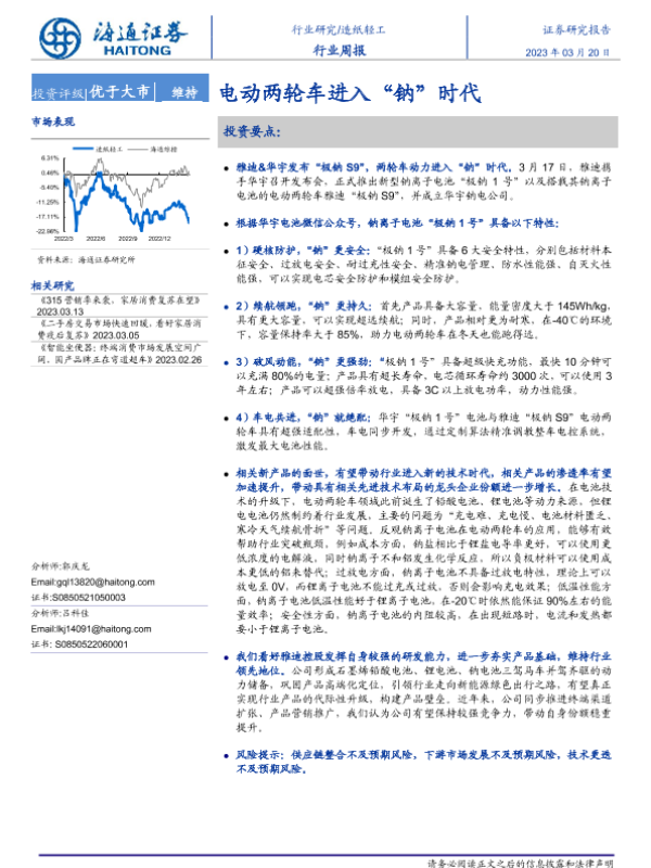 【海通证券】【20230320】20230320-海通证券-造纸轻工行业周报:电动两轮车进入“钠”时代-10页