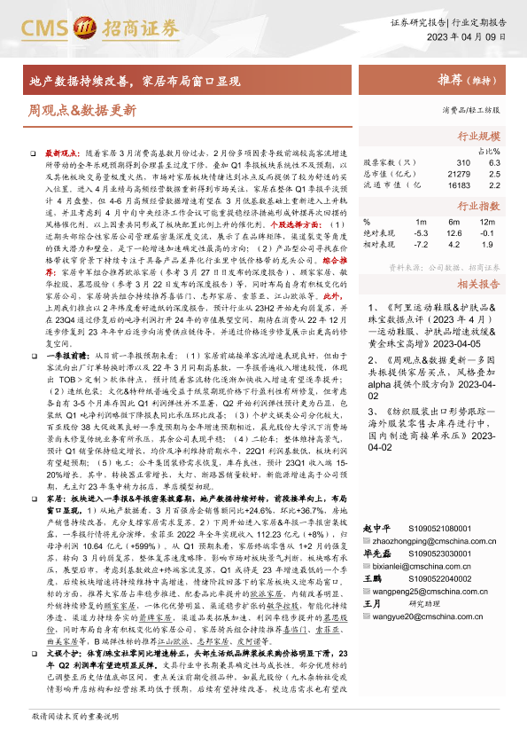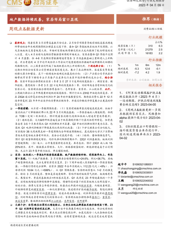 【海通证券】【20230409】20230409-招商证券-轻工纺服行业周观点&数据更新:地产数据持续改善,家居布局窗口显现-26页
