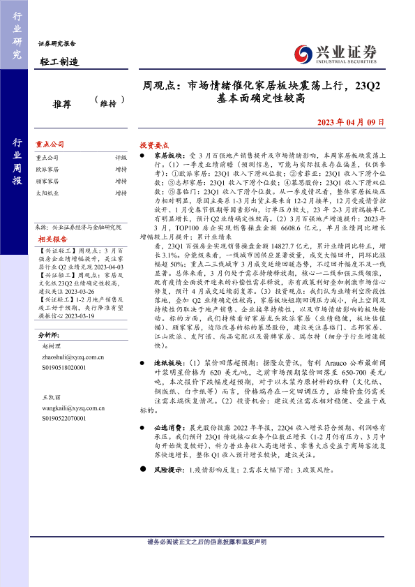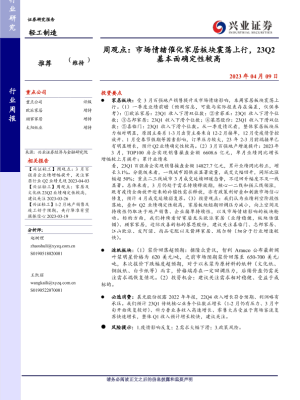 【兴业证券】【20230409】周观点:市场情绪催化家居板块震荡上行,23Q2基本面确定性较高-21页