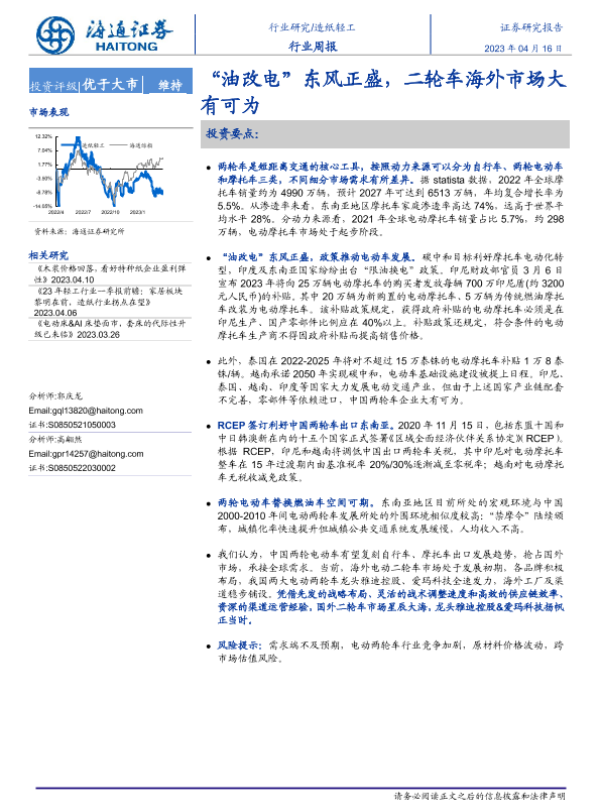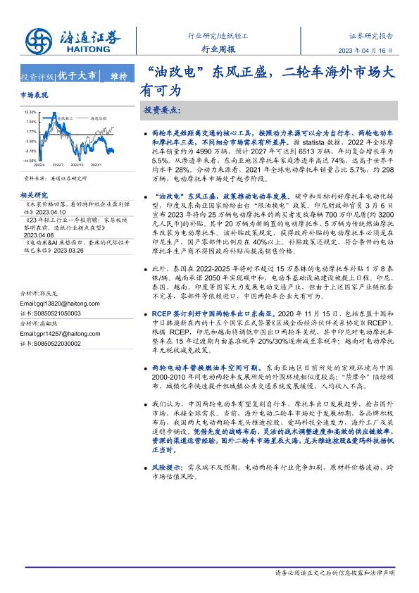 【海通证券】【20230416】20230416-海通证券-造纸轻工行业周报:“油改电”东风正盛,二轮车海外市场大有可为-14页