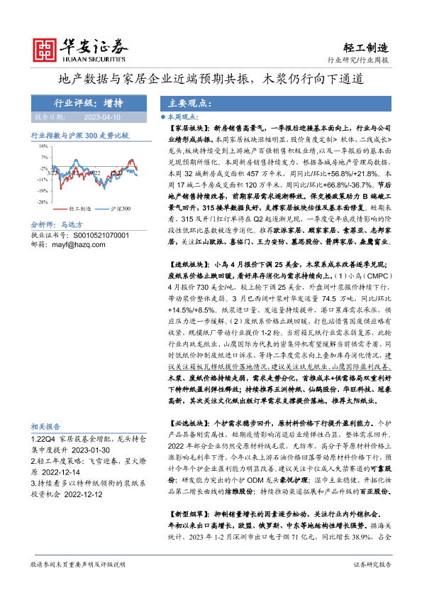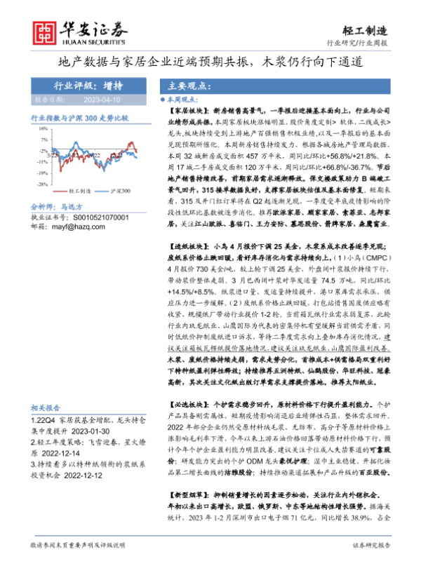 【华安证券】【20230410】20230410-华安证券-轻工制造行业周报:地产数据与家居企业近端预期共振,木浆仍行向下通道-31页