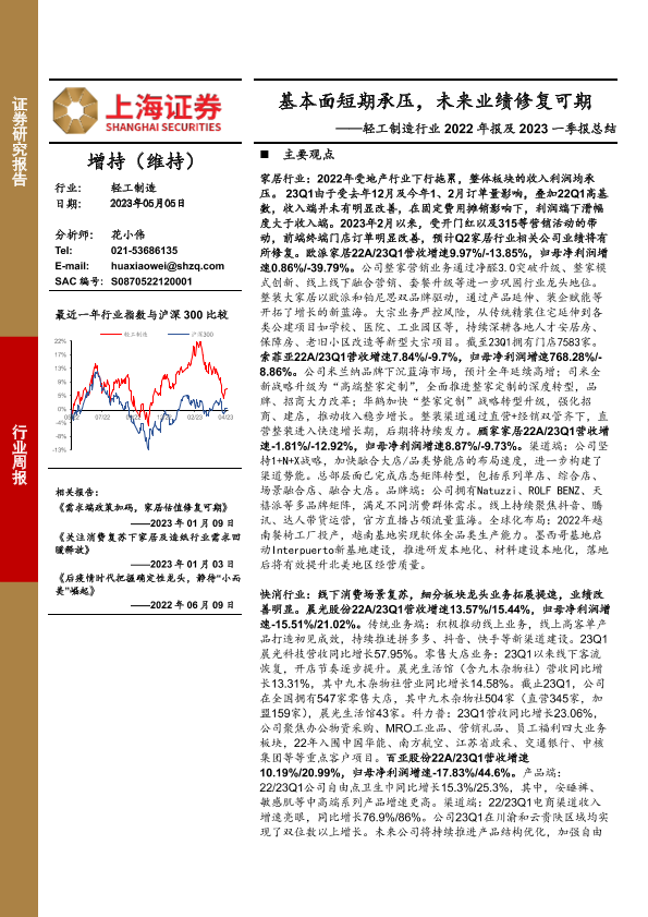 【上海证券】【20230505】基本面短期承压,未来业绩修复可期——轻工制造行业2022年报及2023一季报总结-10页