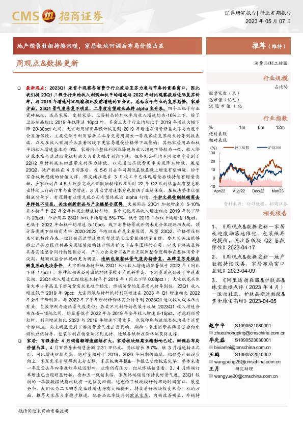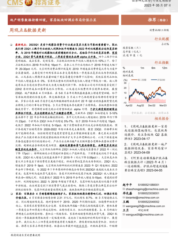【海通证券】【20230507】20230507-招商证券-轻工纺服行业周观点&数据更新:地产销售数据持续回暖,家居板块回调后布局价值凸显-26页