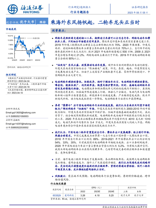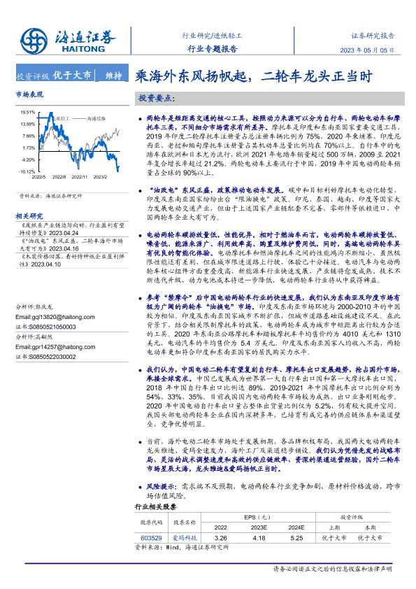 【海通证券】【20230505】20230505-海通证券-造纸轻工行业专题报告:乘海外东风扬帆起,二轮车龙头正当时-40页