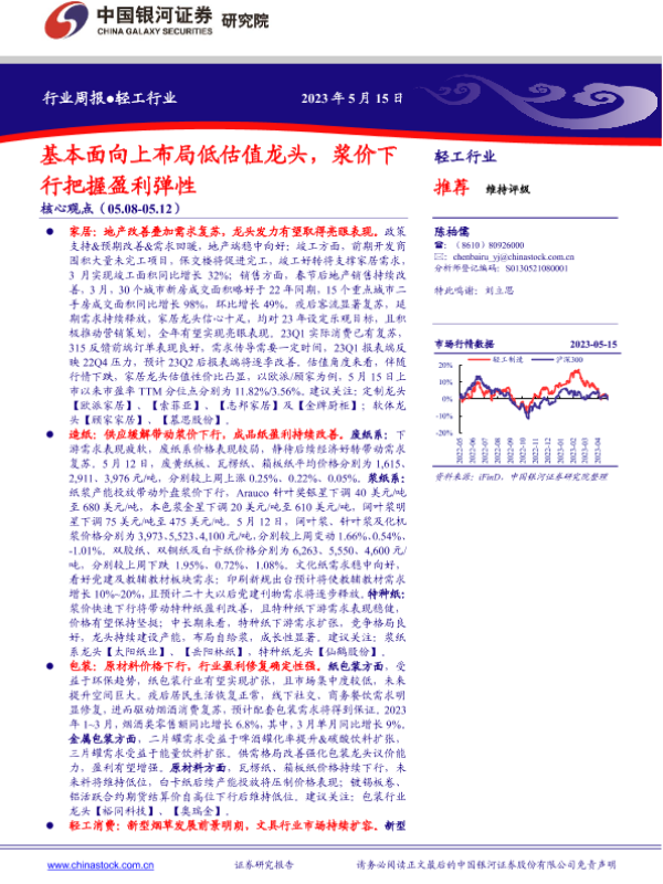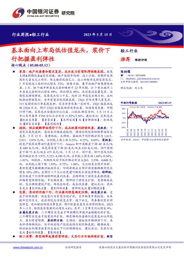 【银河证券】【20230515】20230515-中国银河-轻工行业周报:基本面向上布局低估值龙头,浆价下行把握盈利弹性-21页