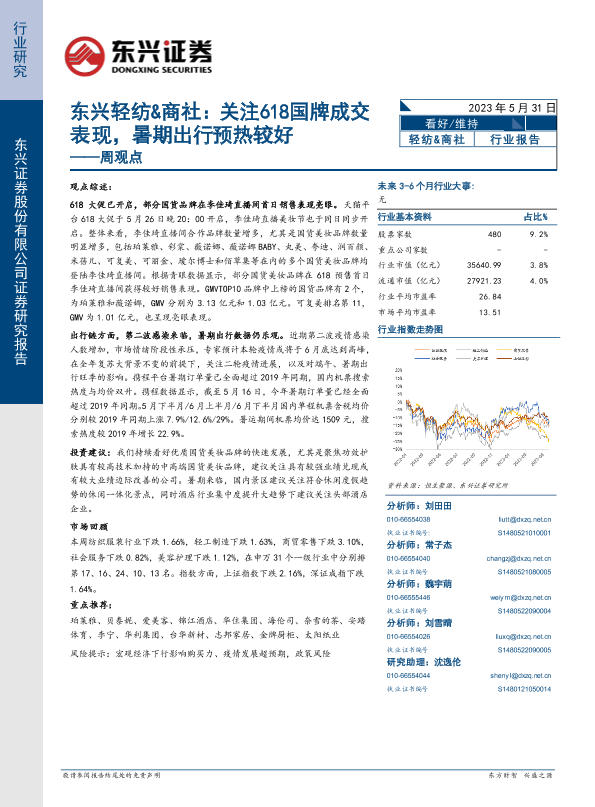 【东兴证券】【20230531】东兴轻纺&商社:关注618国牌成交表现,暑期出行预热较好-14页