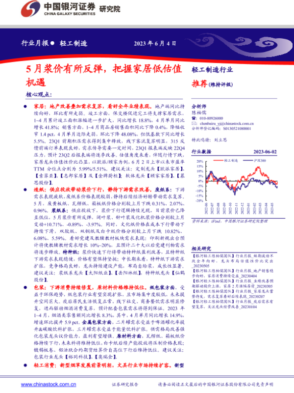 【银河证券】【20230604】20230604-中国银河-轻工制造行业月报:5月浆价有所反弹,把握家居低估值机遇-22页