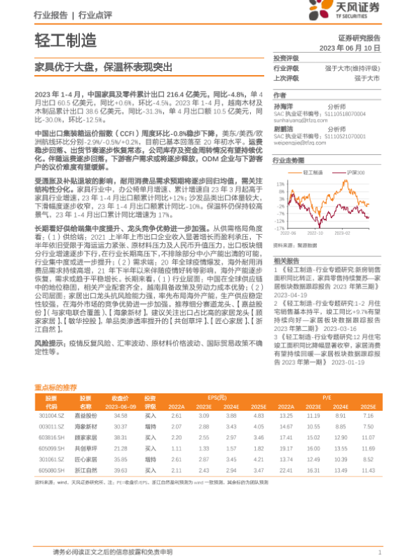 【天风证券】【20230610】轻工制造:家具优于大盘,保温杯表现突出-12页