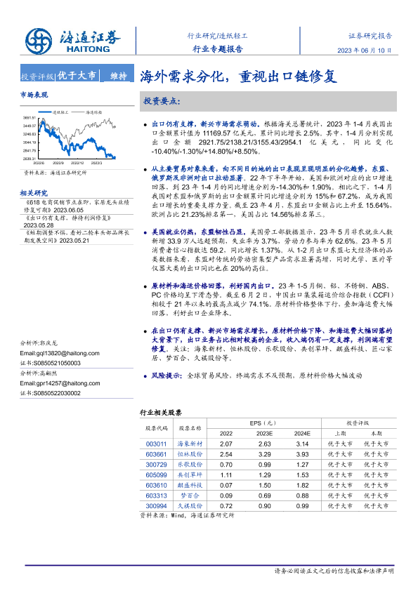 【海通证券】【20230610】20230610-海通证券-造纸轻工行业专题报告:海外需求分化,重视出口链修复-13页
