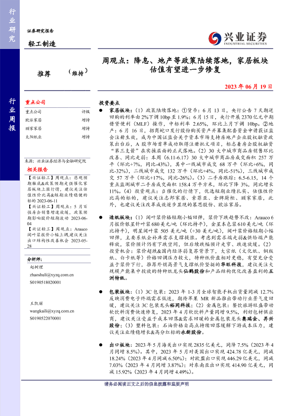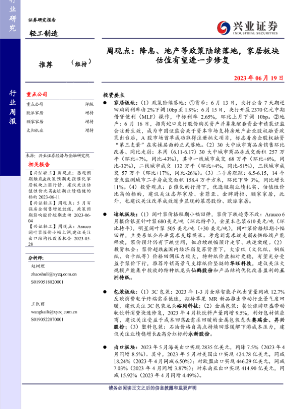 【兴业证券】【20230619】周观点:降息、地产等政策陆续落地,家居板块估值有望进一步修复-23页