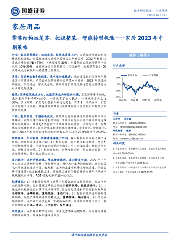 【国盛证券】【20230621】家居2023年中期策略:零售结构性复苏,把握整装、智能转型机遇-31页