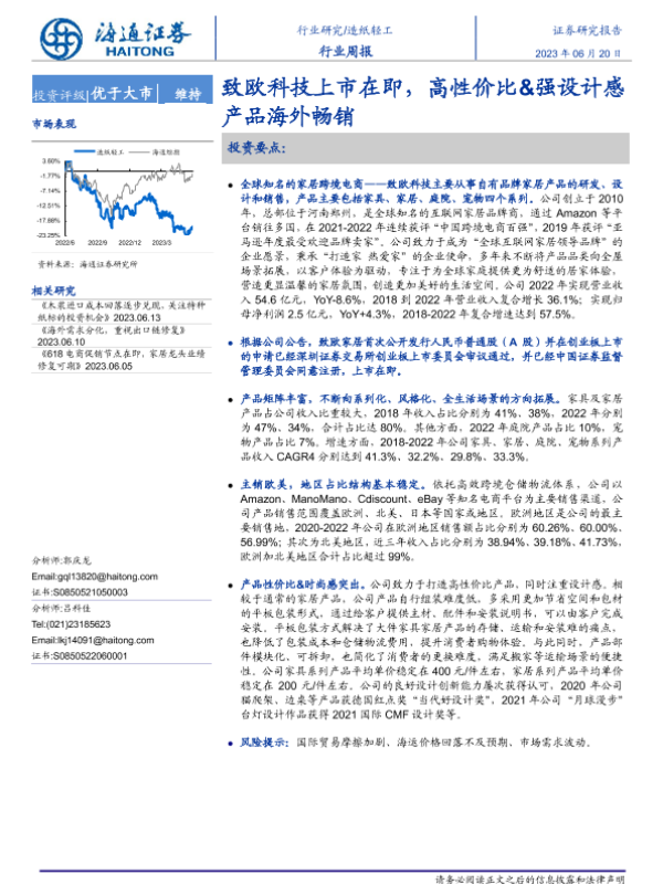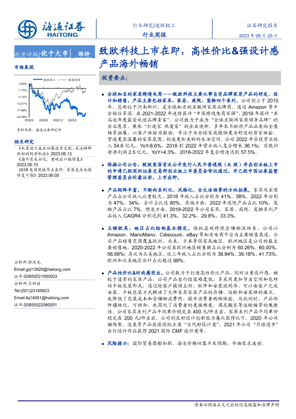 【海通证券】【20230620】20230620-海通证券-造纸轻工行业周报:致欧科技上市在即,高性价比&强设计感产品海外畅销-12页