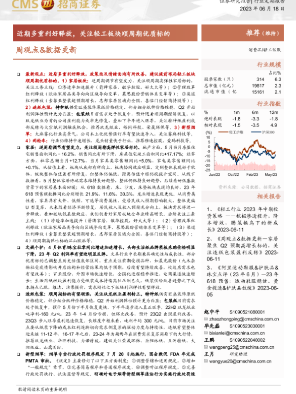 【海通证券】【20230618】20230618-招商证券-轻工纺服周观点&数据更新:近期多重利好释放,关注轻工板块顺周期优质标的-25页