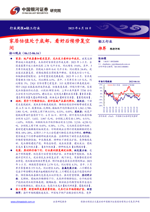 【银河证券】【20230618】20230618-中国银河-轻工行业周报:家居估值处于底部,看好后续修复空间-21页