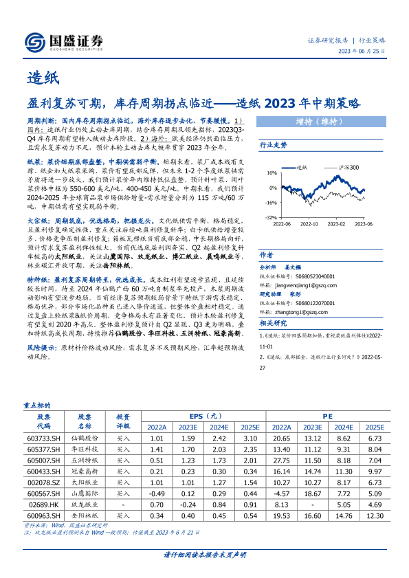 【国盛证券】【20230625】造纸2023年中期策略:盈利复苏可期,库存周期拐点临近-29页