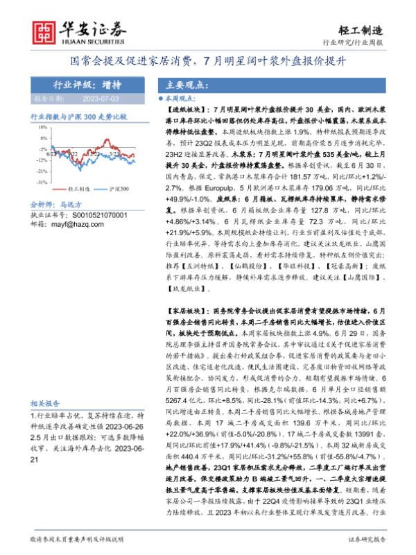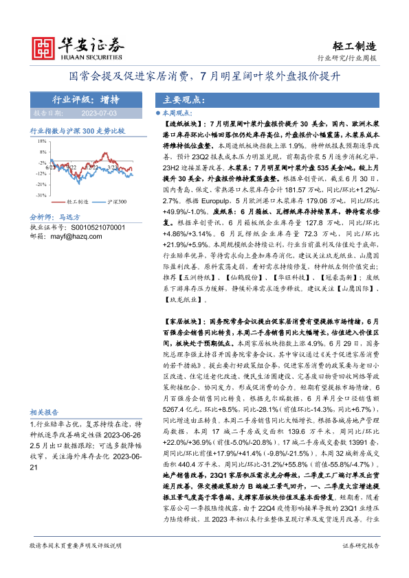 【华安证券】【20230703】20230703-华安证券-轻工制造行业周报:国常会提及促进家居消费,7月明星阔叶浆外盘报价提升-27页