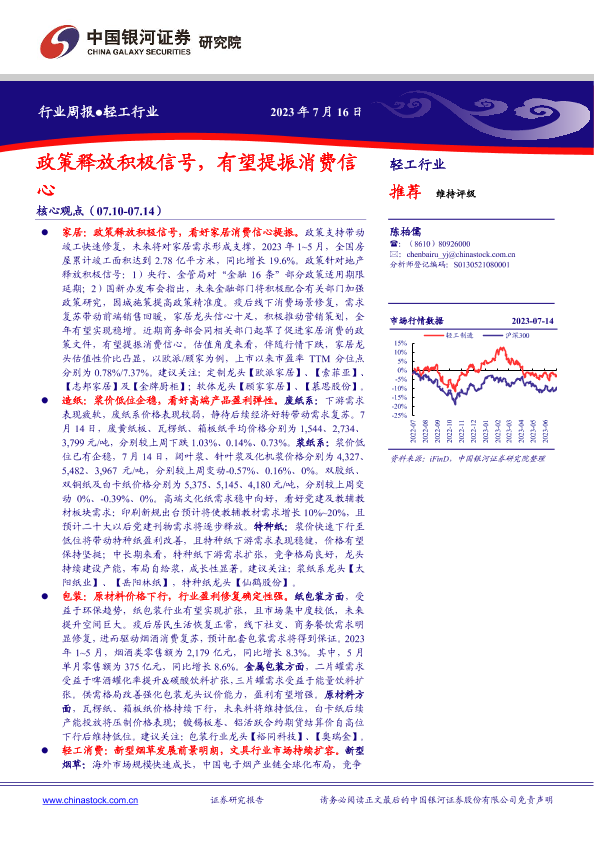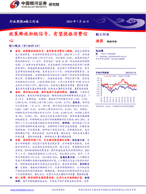 【银河证券】【20230716】20230716-中国银河-轻工行业行业周报:政策释放积极信号,有望提振消费信心-29页