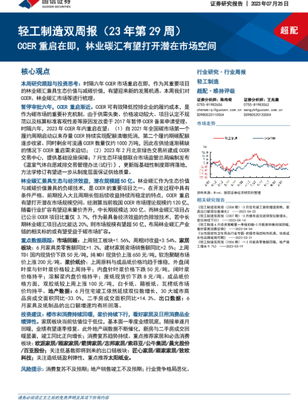 【国信证券】【20230725】20230725-国信证券-轻工制造双周报(23年第29周):CCER重启在即,林业碳汇有望打开潜在市场空间-22页