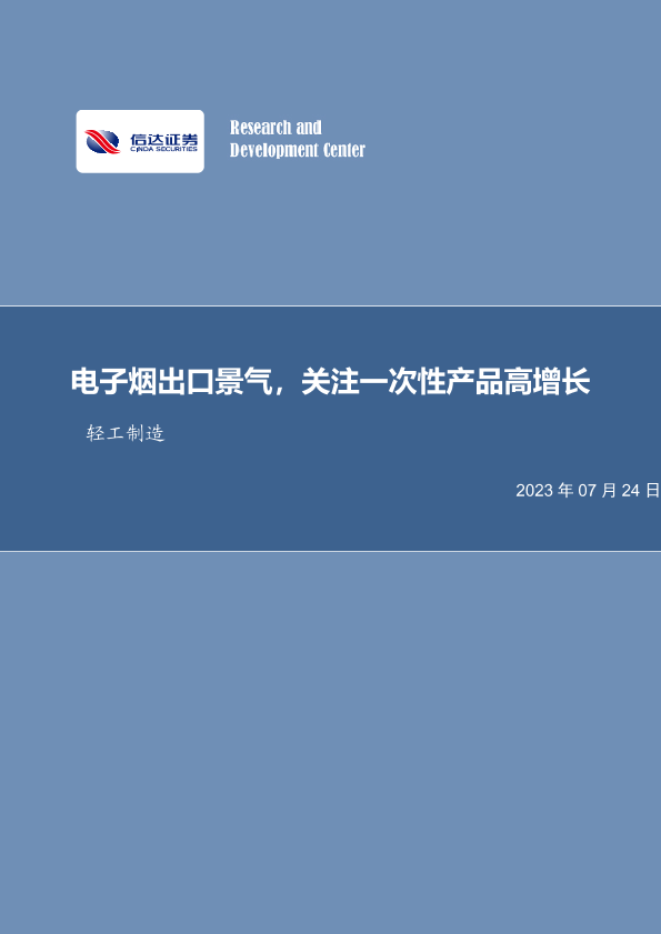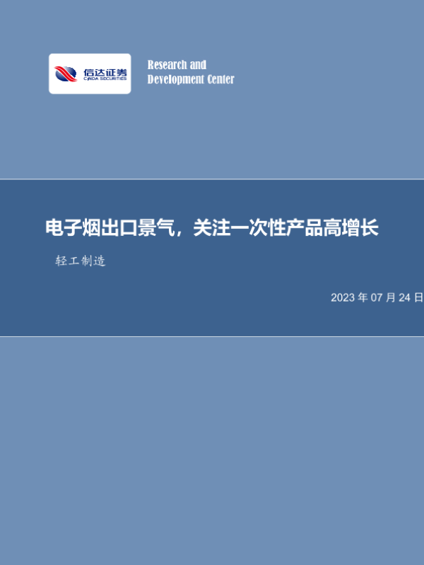 【信达证券】【20230724】20230724-信达证券-轻工制造专题研究:电子烟出口景气,关注一次性产品高增长-12页