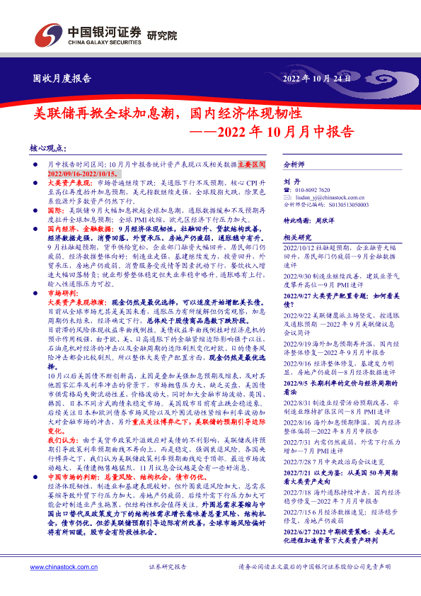 【银河证券】【20221024】2022年10月月中报告:美联储再掀全球加息潮,国内经济体现韧性-26页