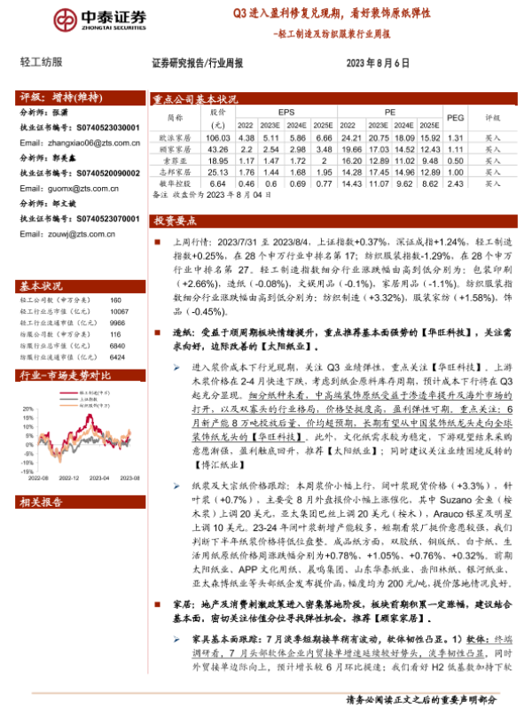 【中泰证券】【20230806】20230806-中泰证券-轻工制造及纺织服装行业周报:Q3进入盈利修复兑现期,看好装饰原纸弹性-20页