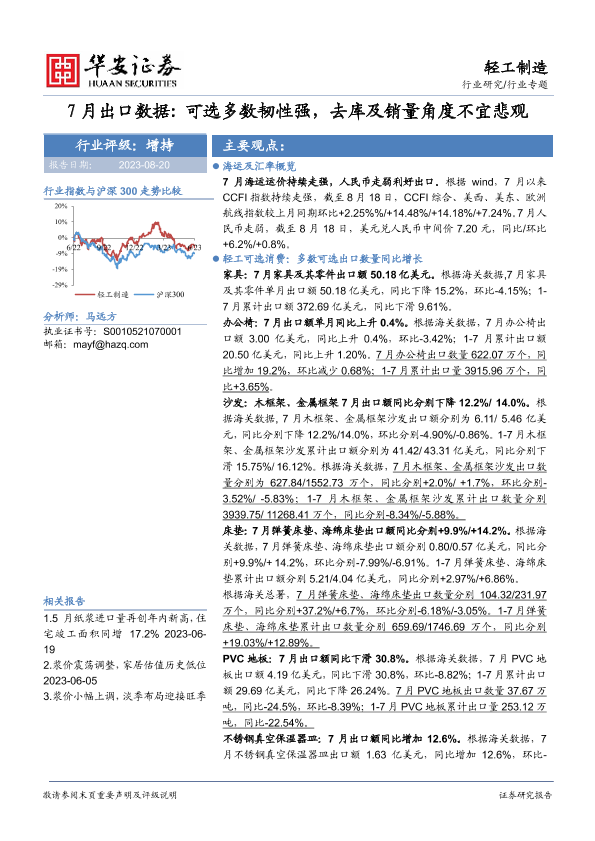 【华安证券】【20230820】20230820-华安证券-轻工制造行业专题:7月出口数据:可选多数韧性强,去库及销量角度不宜悲观-25页