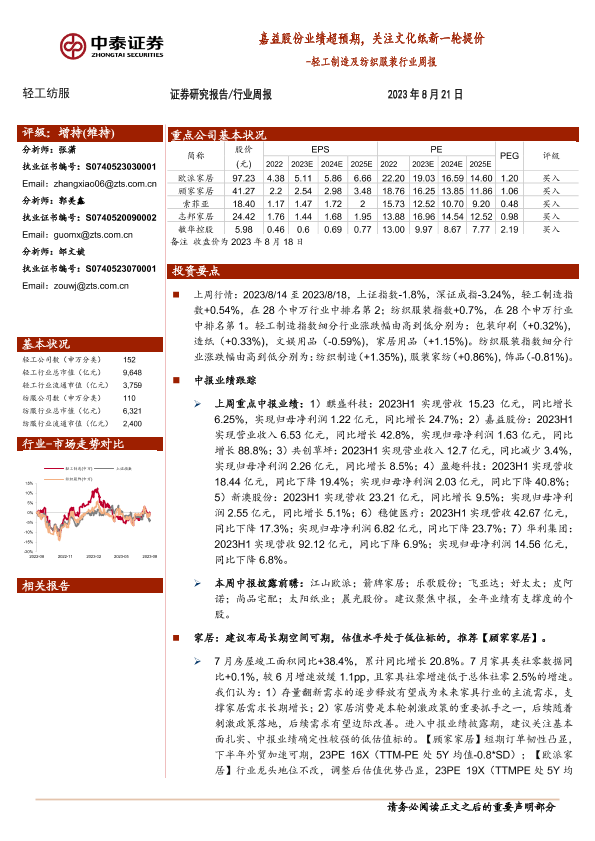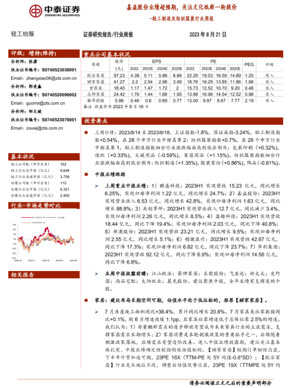 【中泰证券】【20230821】20230821-中泰证券-轻工制造及纺织服装行业周报:嘉益股份业绩超预期,关注文化纸新一轮提价-19页