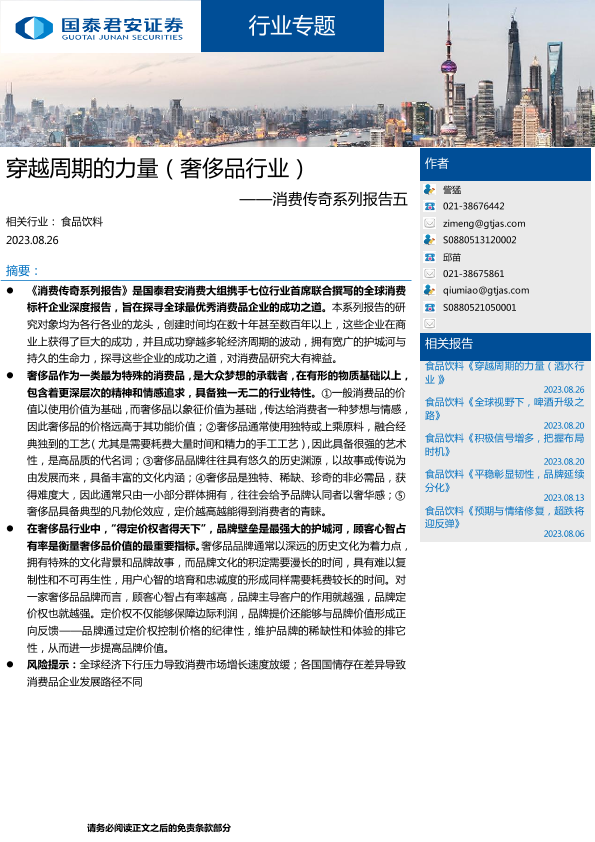 【国泰君安证券】【20230826】20230827-国泰君安-食品饮料行业消费传奇系列报告五:穿越周期的力量(奢侈品行业)-21页