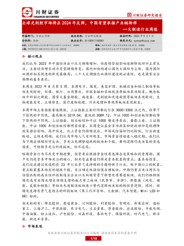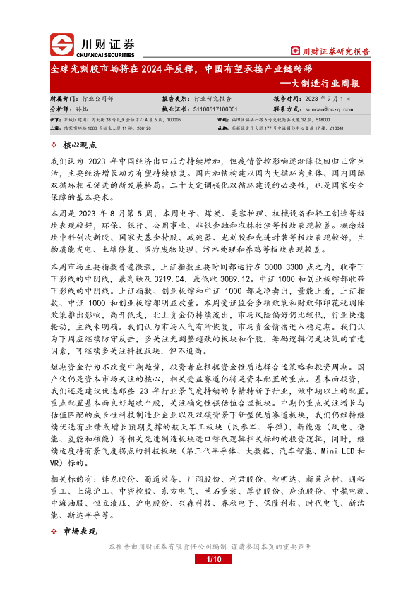 【川财证券】【20230901】20230901-川财证券-大制造行业周报:全球光刻胶市场将在2024年反弹,中国有望承接产业链转移-10页