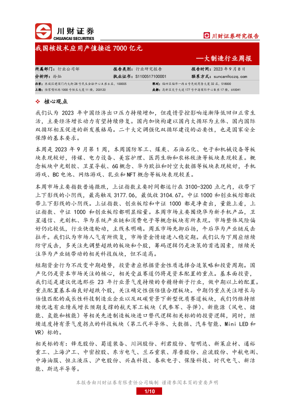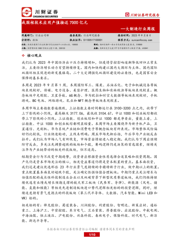 【川财证券】【20230908】20230908-川财证券-大制造行业周报:我国核技术应用产值接近7000亿元-10页