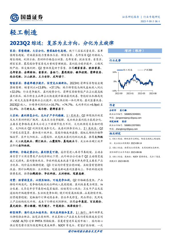 【国盛证券】【20230906】轻工制造2023Q2综述:复苏为主方向,分化为主旋律-38页