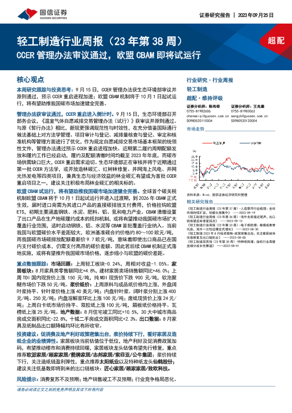【国信证券】【20230925】轻工制造行业周报(23年第38周):CCER管理办法审议通过,欧盟CBAM即将试运行-19页