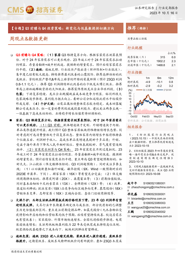 【海通证券】【20231016】20231016-招商证券-消费品轻工纺服周观点&数据更新:【专题】Q3前瞻与Q4投资策略:新变化与低基数提供切换方向-58页