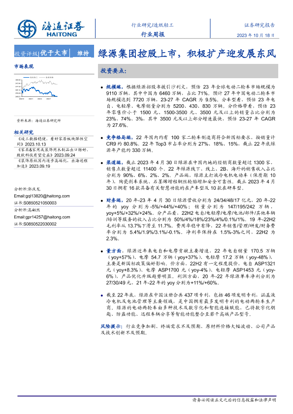 【海通证券】【20231018】20231018-海通证券-造纸轻工行业周报:绿源集团控股上市,积极扩产迎发展东风-11页