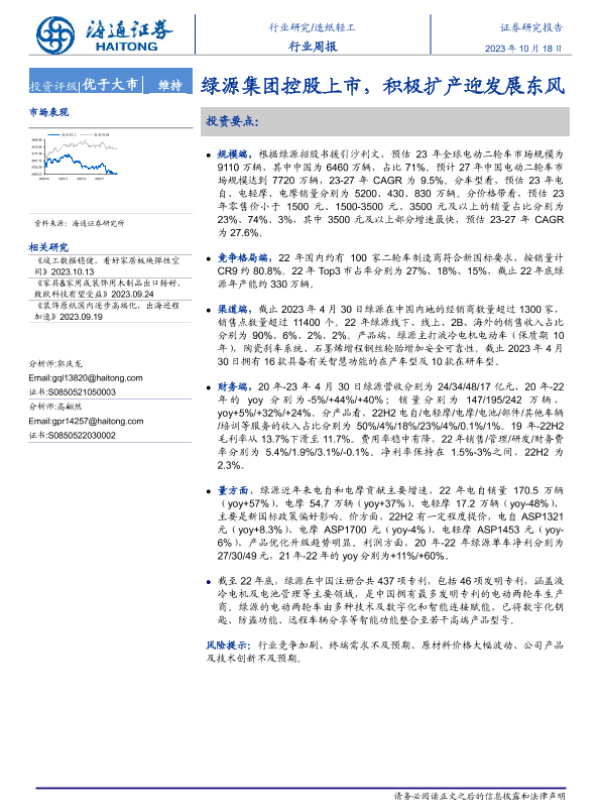 市场竞争 扩产 电动两轮车 绿源集团 行业趋势