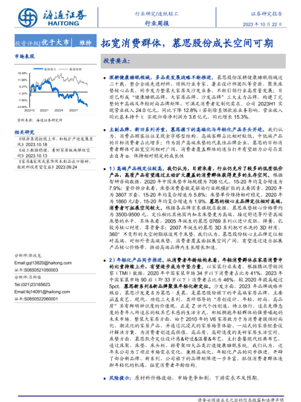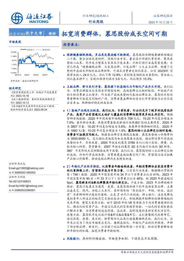 【海通证券】【20231022】20231022-海通证券-造纸轻工行业周报:拓宽消费群体,慕思股份成长空间可期-14页