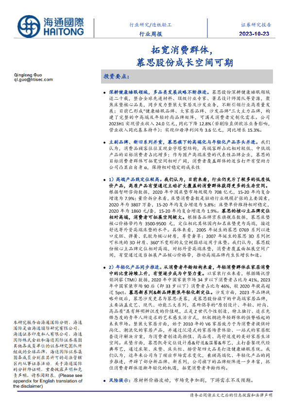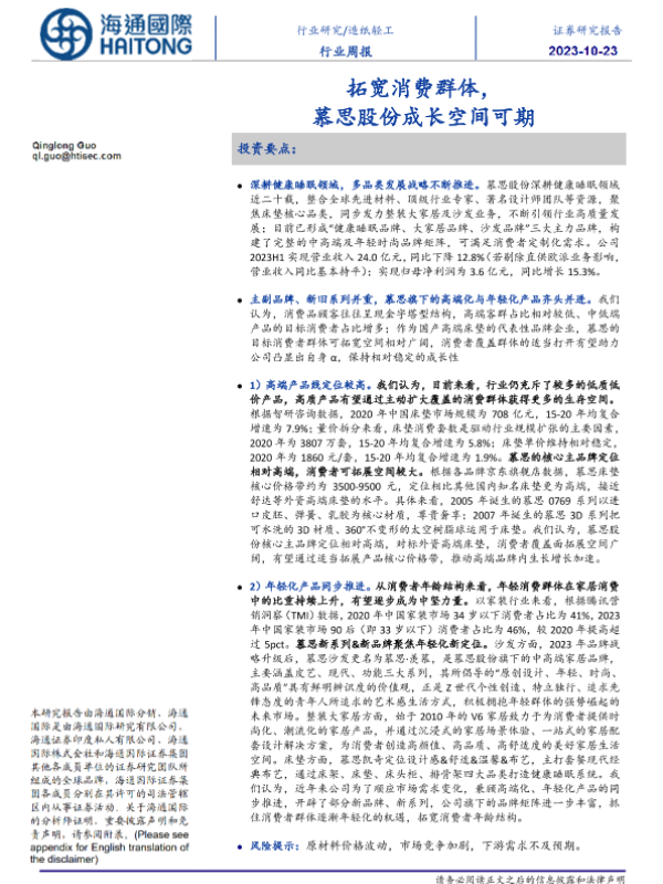 【海通国际】【20231023】20231023-海通国际-造纸轻工行业周报:拓宽消费群体,慕思股份成长空间可期-21页