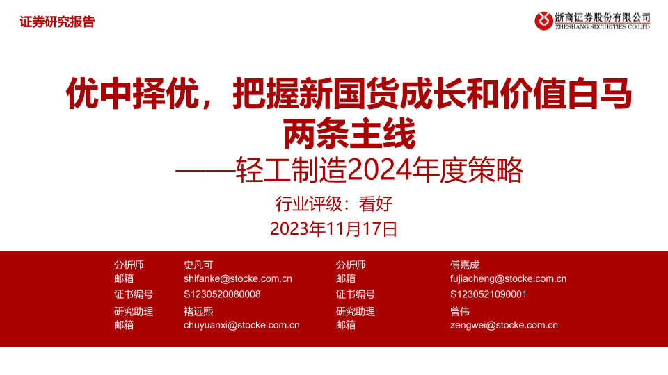 【浙商证券】【20231117】轻工制造2024年度策略:优中择优,把握新国货成长和价值白马两条主线-61页