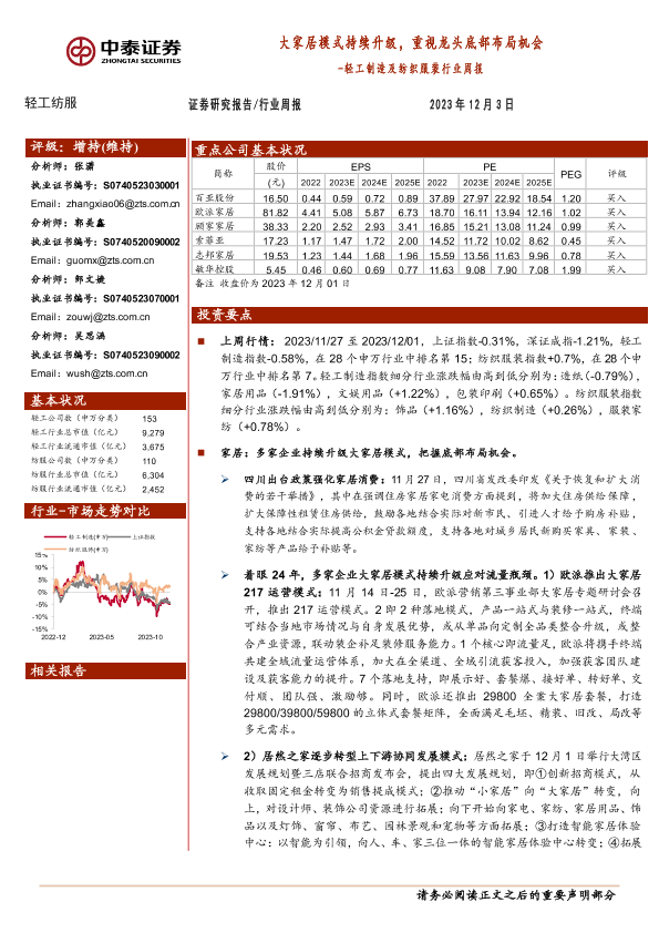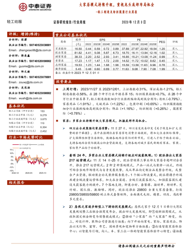 【中泰证券】【20231203】20231203-中泰证券-轻工制造及纺织服装行业周报:大家居模式持续升级,重视龙头底部布局机会-25页