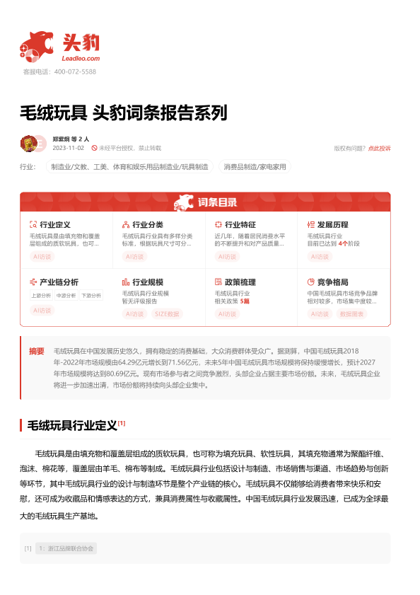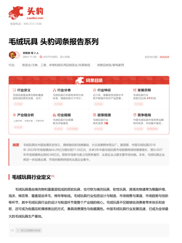 【头豹研究院】【20231102】毛绒玩具 头豹词条报告系列-26页