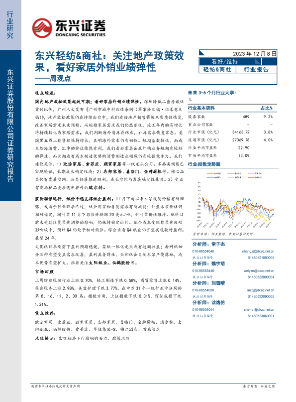 【东兴证券】【20231208】20231208-东兴证券-轻纺&商社周观点:关注地产政策效果,看好家居外销业绩弹性-12页