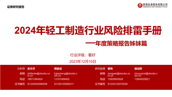 【浙商证券】【20231210】2024年轻工制造行业风险排雷手册—年度策略报告姊妹篇-16页