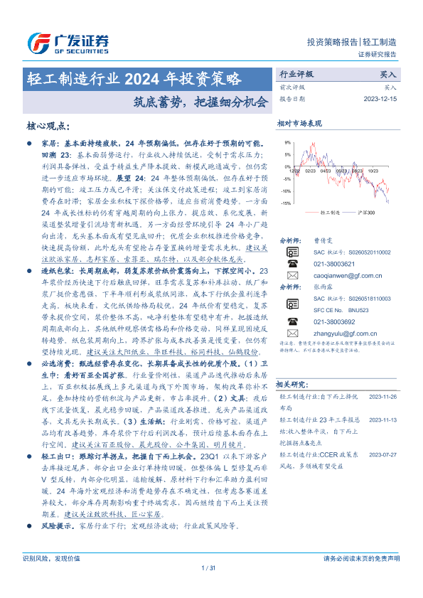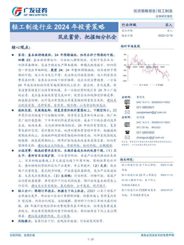 【广发证券】【20231215】轻工制造行业2024年投资策略:筑底蓄势,把握细分机会-31页