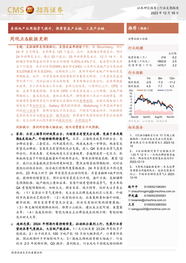 【海通证券】【20231218】20231218-招商证券-消费品轻工纺服周观点&数据更新:美国地产后周期景气提升,推荐家具产业链、工具产业链-39页